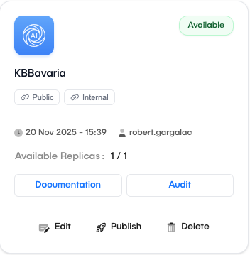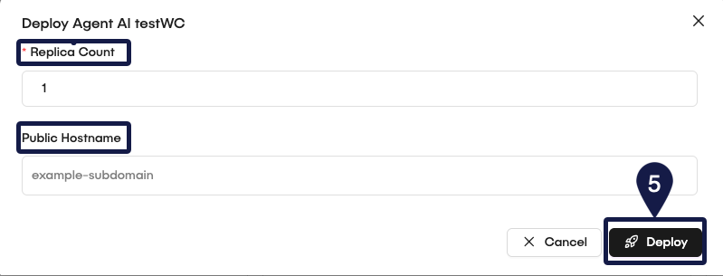 - Replica count: Set the number of replicas for the AI Agent. This determines how many instances of the agent will run concurrently to handle requests.